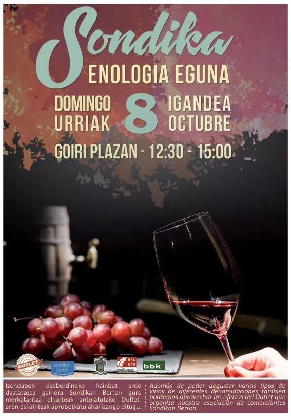 Con motivo de la Feria del Vino que se celebró el domingo día 8 de Octubre en nuestro pueblo "Sondika", los comercios asociados de la localidad,realizamos un Outlet,donde los visitantes tuvieron la oportunidad de contratar servicios con interesantes descuentos.....
